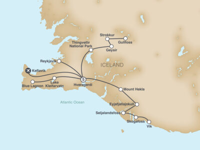 Discover the geysers, volcanoes, geothermal pools, natural lights, and ancient cultures of stunning Iceland on a 7-day trip around the country!